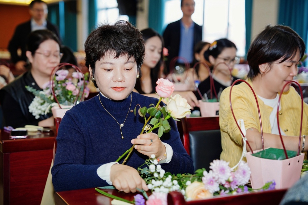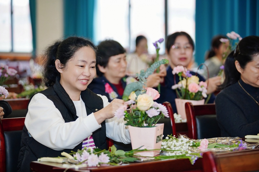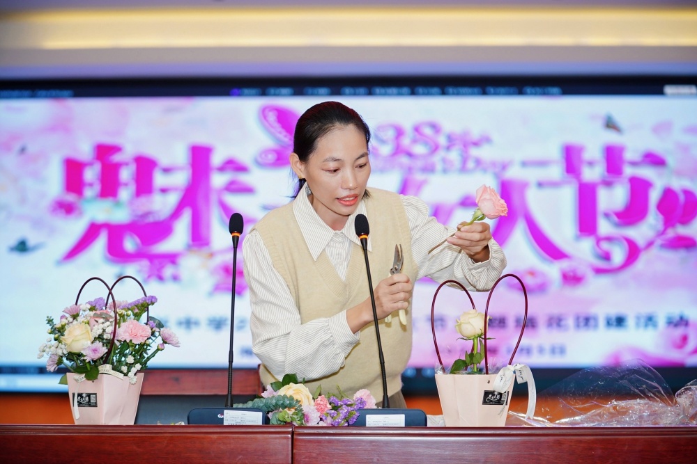 国兴中学为女教师举办三八妇女节主题插花、下午茶团建活动