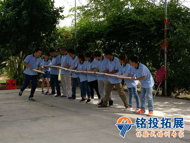 团队拓展:群龙取水,是考验团队协作能力的项目。
