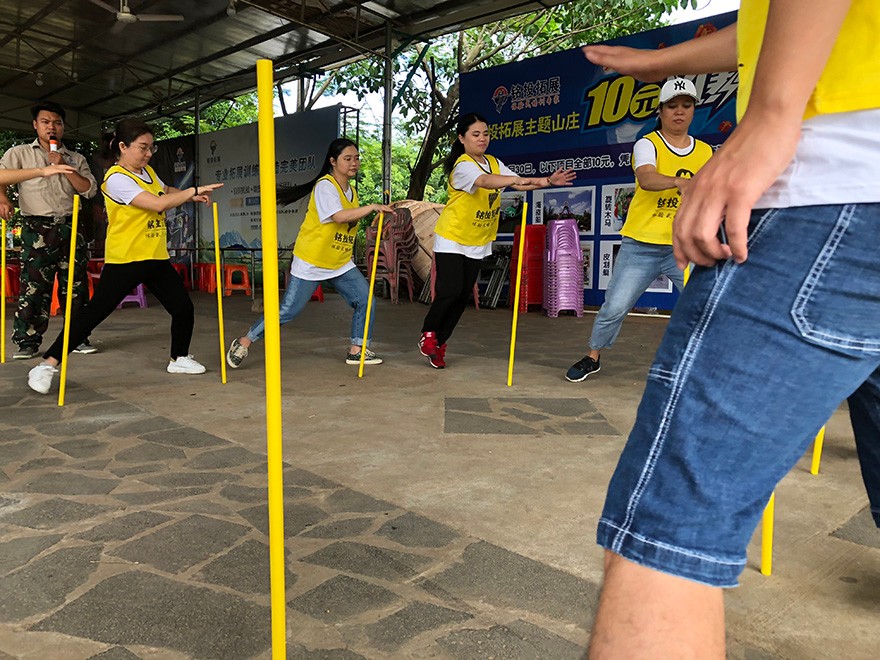经过破冰开营后,开展了不倒森林和同舟共济等拓展项目