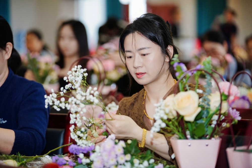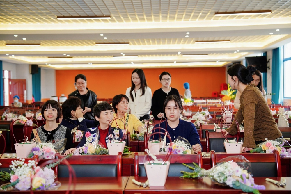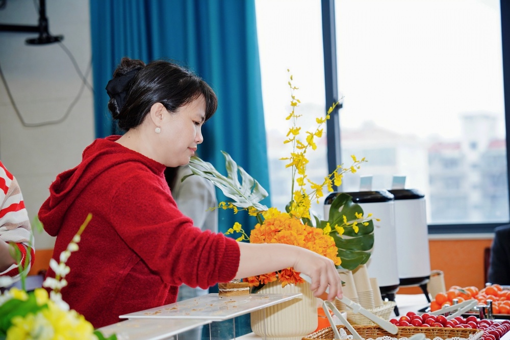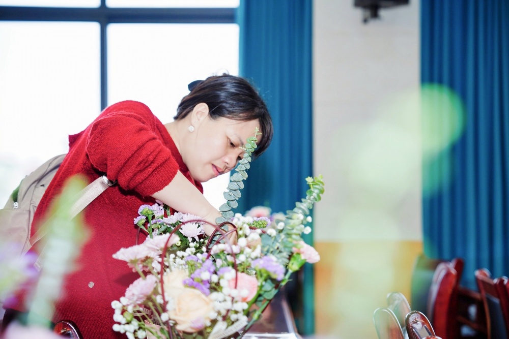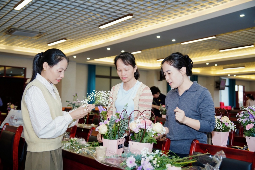国兴中学为女教师举办三八妇女节主题插花、下午茶团建活动