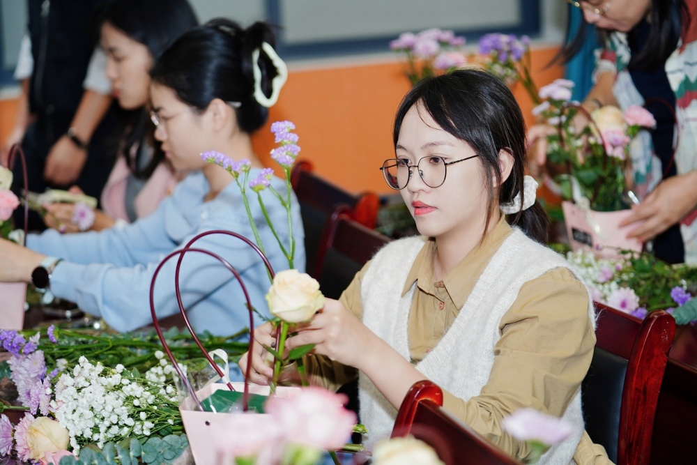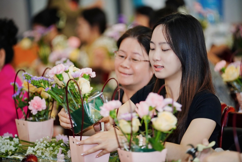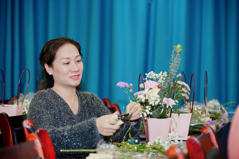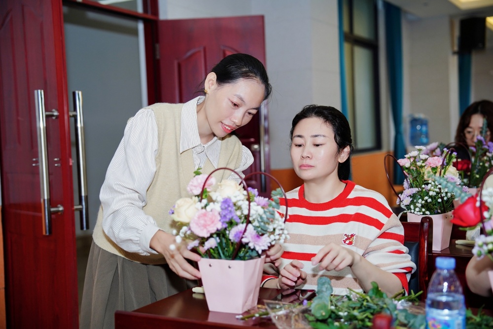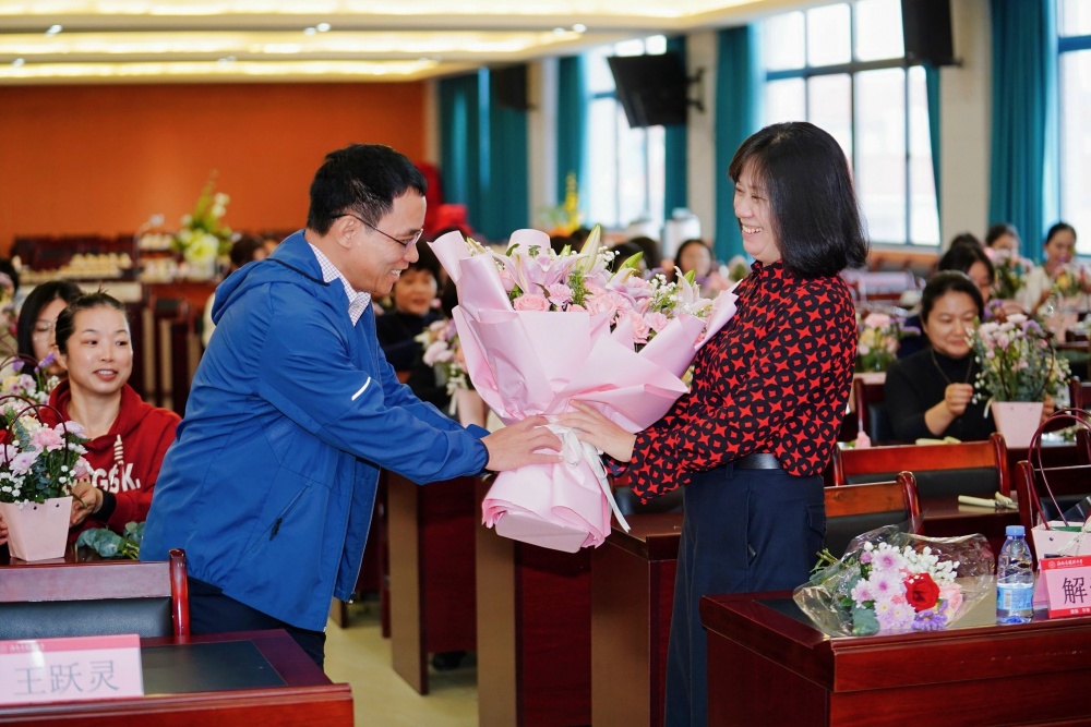 国兴中学为女教师举办三八妇女节主题插花、下午茶团建活动