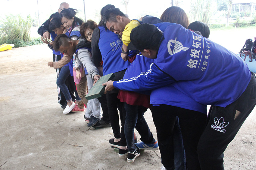 接下来,大家开始一项令人难忘的拓展训练。大家开始尝试着,努力地在几块木板上紧紧相拥。